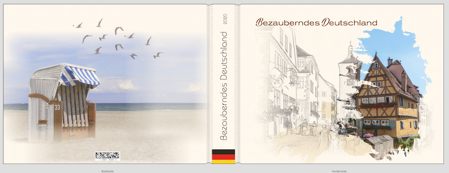 mich irritiert, dass der Turm links wie abgeschnitten aussieht, so, als ob der Turm am linken Bildrand ausgeblendet wird. Drücke ich mich verständlich aus? Sind das 2 Bilder nebeneinander? Dann würde ich das linke mit dem Strassenzug ganz weglassen. Weniger ist da, glaube ich, mehr. Dass die Farben so kräftig sind, finde ich auch nicht so gut, vielleicht wirkt der farbige Teil des Bildes mit einer Transaprenz besser. Die Rückseite gefällt mir gut, das Foto ist klasse. Viele Grüsse