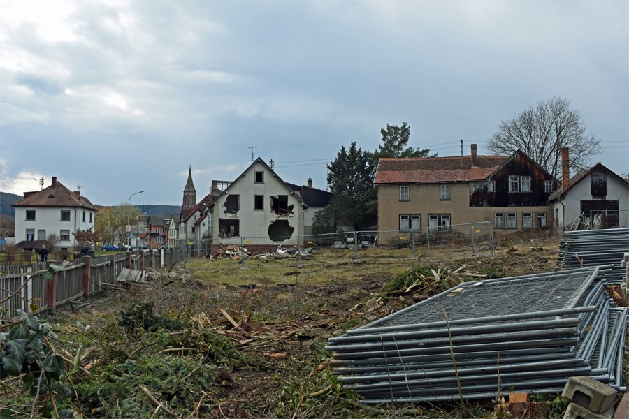 Re: Challenge 03/2021 • Zwei Mal täglichBereits in den letzten Wochen hatte es sich abgezeichnet - das alte Gehöft muss wohl etwas Neuem weichen. Zunächst wurden die Bäume gefällt und die Büsche entfernt. Dann stand morgens der Bagger da und als ich auf dem Heimweg wieder vorbeigefahren bin, war das erste Haus bereits zum Teil "abgerissen".