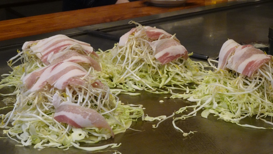 Dieses leckere Gericht habe ich in Japan gerne gegessen. Es wird vor den Augen der Gäste zubereitet. Okonomi übersetzt man mit 'Geschmack nach Belieben' yaki mit gegrillt/gebraten. Man nehme Wasser, Kohl, Mehl, Ei und Dashi. Was der Gast sonst noch gerne hätte wird ebenfalls hinzugefügt. Falls Ihr mal in Japan seid, probiert es unbedingt einmal aus. SONY DSC-HX99 - ISO 800 - 13.05 mm - ƒ/5 1/60 s