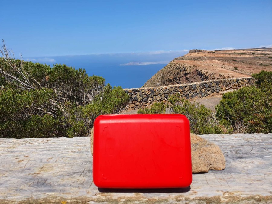 Auf der heutigen Wanderung von Harald nach Teguise stach mir meine rote Brotbox ins Auge. Foto wurde mit Smartphone gemacht.