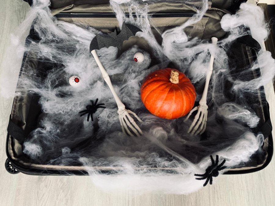 "Ich packe meinen Geisterkoffer und nehme mit.. einen Kürbis und einen Pilz und meine Ausgehmaske"