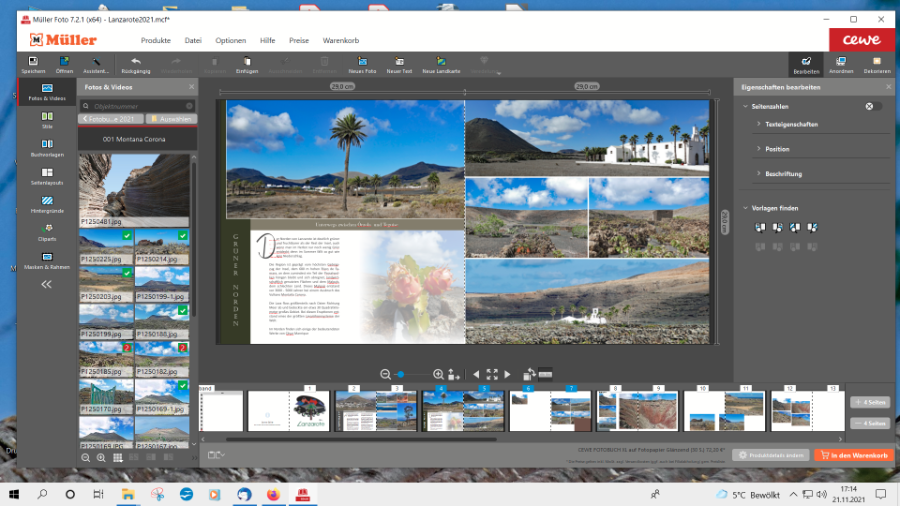 ich war auf Lanzarote (mal wieder...) und sitze bei dem tollen Novemberwetter über dem Fotobuch. Ich zeige Euch mal die Einleitungsseite und die Einleitung zu einem Kapitel - mit der Folgeseite komme ich aber gar nicht weiter. Problem für mich auf der Seite "Corona" (der Vulkan heißt so) ist, dass ich die Fotos eigentlich gerne versetzt anordnen möchte, damit der Kraterrand bündig ist. Ich bin auch auf der Seite "Norden" noch nicht glücklich mit der Kaktusblüte, ohne ein Foto dort kam mir die Seite zu nackt vor, ich hätte auch gern den Kaktus auf der Seite, weil das Foto schön bunt ist, es ist aber irgendwie zu wuchtig... Die Texte sind noch gar nicht Korrektur gelesen. Danke schon mal im Voraus!!! Re: Inspirationen gesuchtLiebe Reisetante,