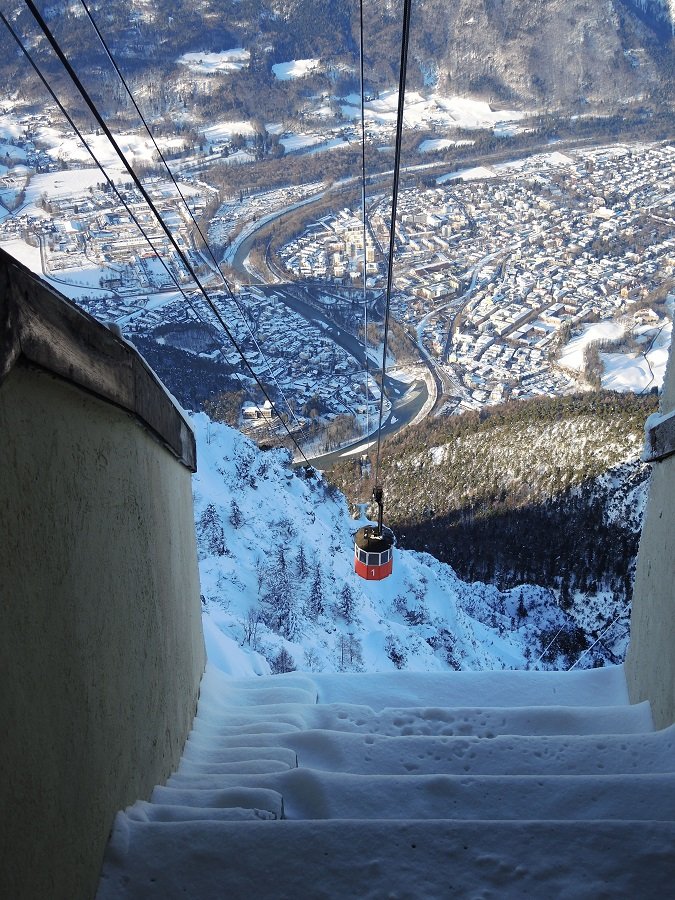 In Bad Reichenhall kann man mit dieser spektakulären Bahn von 1928 auf den Predigtstuhl fahren (1.614 Meter hoch). Mit über 80 Betriebsjahren ist sie die älteste - im Original erhaltene - Großkabinenbahn der Welt. Sie überwindet auf 2.500 Metern einen Höhenunterschied von 1.150 Metern. 2006 wurde sie zum technischen Denkmal erklärt. Die Predigtstuhlbahn zählt zu den 10 spektakulärsten Seilbahnen der Welt. Wir waren im Januar 2015 bei herrlichem Wetter und frischem Pulverschnee da. Liebe Grüße phili