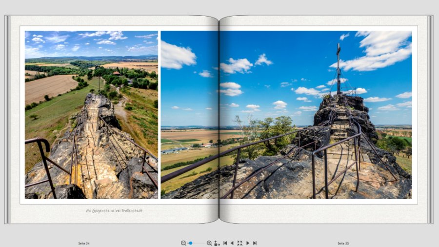 Hallo Hans-Jürgen, schön, dass hier Deine gestalteten Seiten zeigst. Mir persönlich hat die 2. Version der zuerst gezeigten Seiten besser gefallen.Diese wirken auf mich interessanter. Dies ist aber wie immer Geschmackssache. Die 3. gezeigte Seite mit dem Brocken und der Hexe finde ich witzig. Vielleicht kannst Du diese an die 2.Version angleichen. Was den Text anbetrifft, da stimme ich Kunigunde zu. Außerdem würde ich aufpassen, dass der Text nicht zu nahe an den Falz reicht. Ich versuche immer mindestens 1,5 bis 2 cm Abstand zum Falz einzuhalten. Weiterhin noch viel Spass beim Gestalten. Liebe Grüße Asiafan