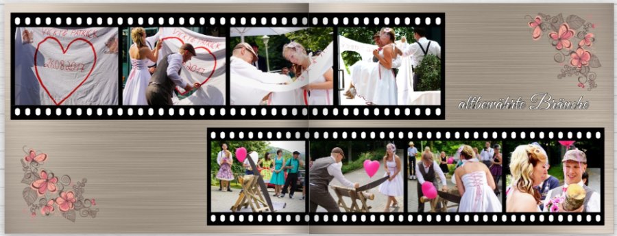 Ich finde auch 8 Fotos auf der Doppelseite - alle in der gleichen Größe - sehr langweilig und keines kommt richtig zur Geltung.