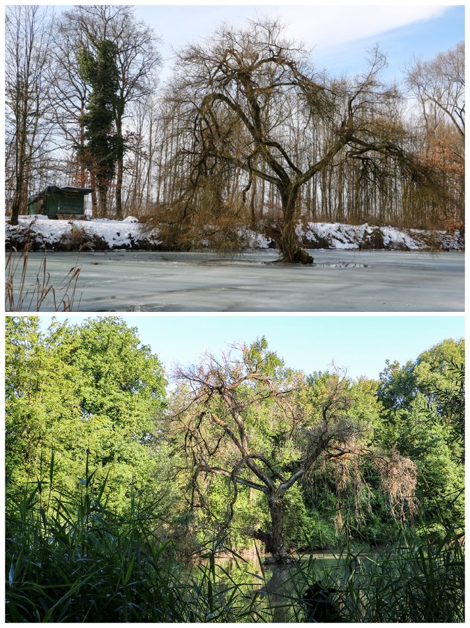 Der gleiche Baum, einmal vom 22. Jänner, dem einzigen Tag, an dem es im letzten Winter geschneit hat, und einmal von heute.