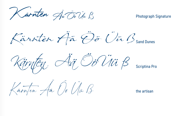 Reisetante und Basilikum haben ja schon auf die fehlenden Umlaute in dem von Dir benutzten Font hingewiesen und auch einen Workaround beschrieben. Hier hätte ich ein paar alternative Fonts mit Umlauten und "ß". Da Du die Schrift auch im Buch verwendest, brauchst Du vielleicht ja mal das "ß". Alle diese Fonts kannst Du bei dafont.com herunterladen. Viele Grüsse