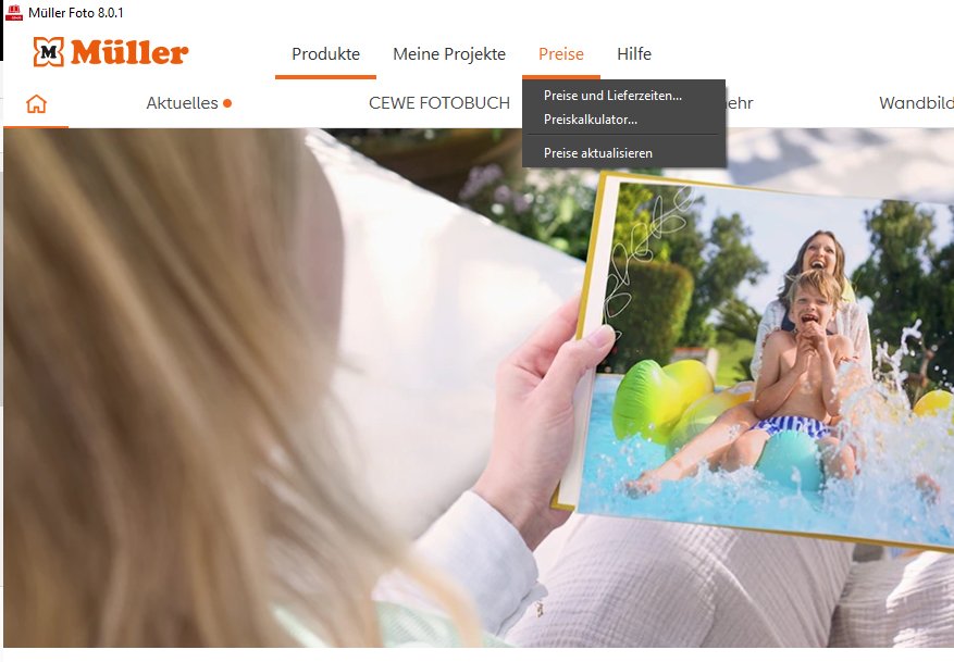Vielen Dank, Haruun, dass Du sogar am Sonntag Nachmittag hilfst. Leider vergeblich. Ich habe alle Anwendungen geschlossen, der PC neu gestartet, das Verzeichnis 6822 umbenannt, die CEWE Fotowelt wieder gestartet -> keine Produkte und Preise, Preise aktualisiert -> immer noch nichts, Fotowelt neu gestartet -> wieder nichts.