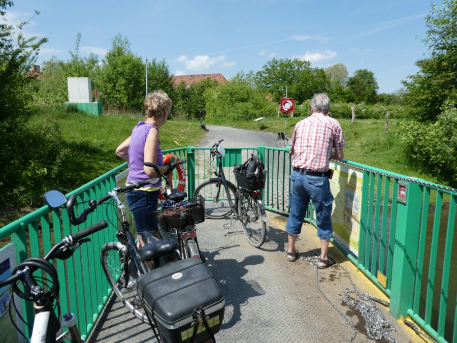 4 Gierseilfähren führen auf dem Lippe-Fahrradweg ans andere Ufer. Der Kettenantrieb und muß von den Benutzern selbst betätigt werden.