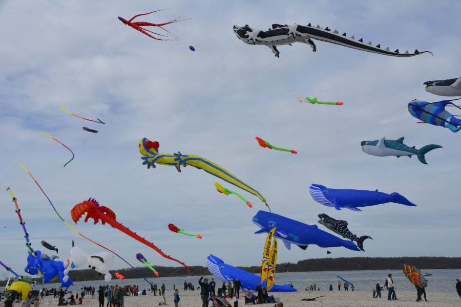 Drachenfest in Laboe. So einen Drachen zu halten ist schon eine sportliche Leistung.
