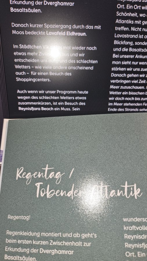 b) Auch die Darstellung der Island-Karte (weisse Konturen) sind ebenfalls Abweichungen zwischen Vorschau und gedrucktem Buch vorhanden.