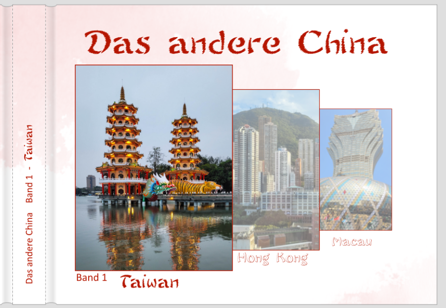 Da werde ich wohl noch weiter experimentieren müssen. Ich möchte eigentlich schon, dass am Cover ein Hinweis auf alle Ziele steht. "Band 1" sagt ja nur aus, dass weitere Bücher folgen. Es könnte ja auch ein zweites Taiwan-Buch sein. @spica: Du hast immer super Gestaltungsideen, aber diesmal ist es nich so ganz Meines. Schaut schon schön aus, aber die 3 Länder oben habe ich nicht als solche erkannt. Nur Taiwan hat eine markante Form. Wer kennt schon die Umrisse von Hongkong und Macau. Mit den roten Rändern hast du recht, das ist mir erst aufgefallen, als ich es eingestellt hatte. Der Hintergrund ist mit einem transparenten Clipart belegt, da kann ich noch weiß zugeben und hinter den transparenten Bildern liegt noch ein weißes Clipart, da scheint dann nichts vom Rot durch. Ich werde nun mal am Schmutztitel arbeiten, vielleicht kommt da noch eine Erleuchtung. Und dann habe ich ja noch lange Zeit, noch ist ja keines der beiden Büchen druckfreif. Ich melde mich auf jeden Fall wieder. LG Monika Re: Eine Reise - Zwei Bücher - Null IdeenWie wäre denn der schlichte Gestaltungsansatz, unter dem Haupttitel einfach die 3 Ziele aufzuzählen: