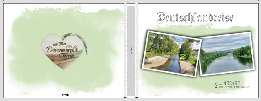 Ich finde das Lindgrün schöner als das Rosa, die Version mit dem dezenten Farbklecks hinter den 2 Fotos gefällt mir am besten. Die Schrift Deutschlandreise mag ich auch nicht, da bin ich bei Spica... Auch der Unterschied zwischen den beiden Schriftarten Deutschlandreise und "neckar" finde ich zu krass.