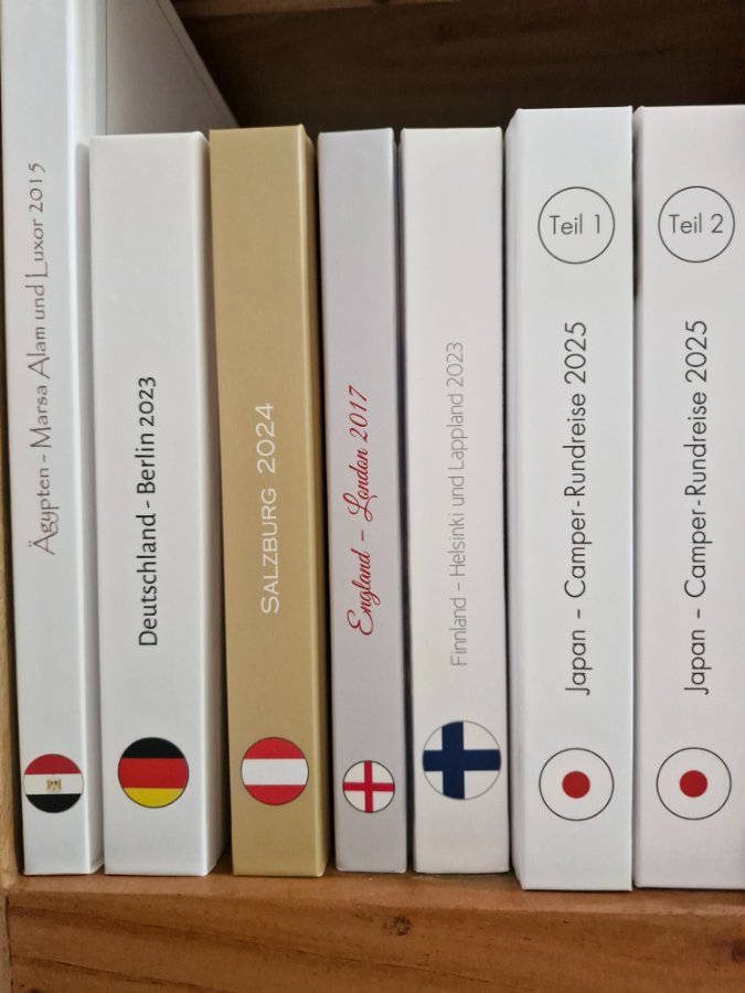 Nici Re: Coverideen gesucht! 1 Reise - 2 Städte in 2 LändernDa fällt mir gerade ein: Wie würdet ihr in meinem Fall den Buchrücken gestalten? Normalerweise habe ich unten die Länderflagge und dann das Land und der Ort/Stadt. Außer bei Reisen innerhalb Österreichs schreibe ich nur die Stadt hin, ohne "Österreich" vorne.