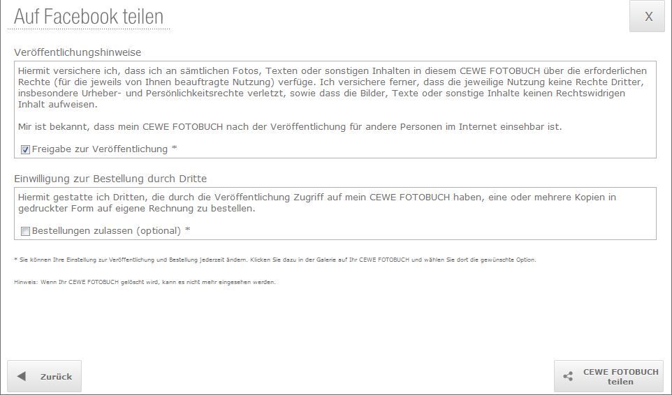 Re: Veröffentlichung bei facebookDanke für die neuen Hinweise. Das Fenster mit den Hinweisen zur Veröffentlichung, wo ich die Häkchen für die Freigabe setzen mußte, hatte ich schon mindestens fünfmal bearbeitet.