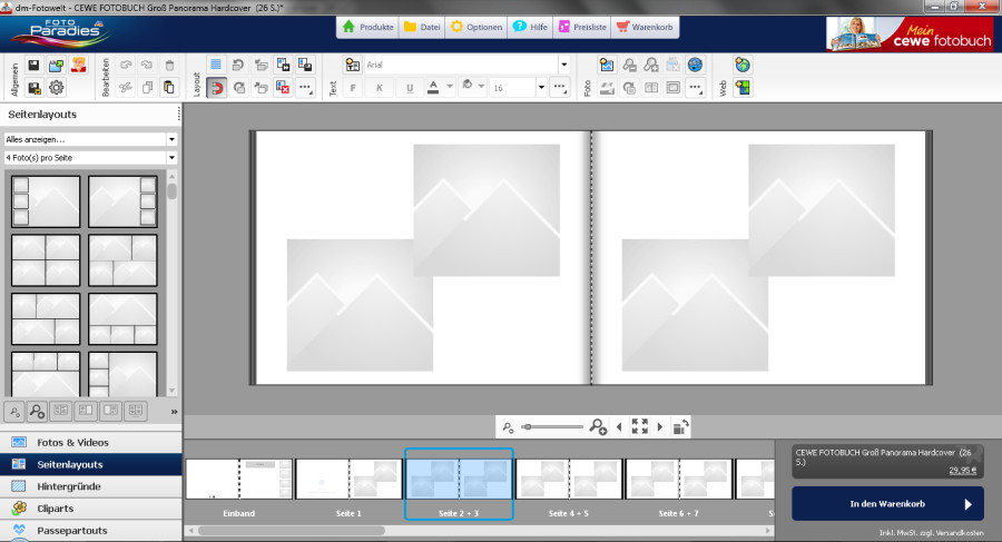 Ob dieser riesengroße Button "In den Warenkorb" rechts unten wirklich sein muss, bezweifle ich. Er wirkt, als hätten die Entwickler/Marketingleute Angst, dass man sich die Mühe mit der Erstellung eines Buches macht und dann vergisst, es zu bestellen. Ist mir aber nicht so wichtig, wenn andere Funktionen dadurch nicht eingeschränkt werden (s.o.)
