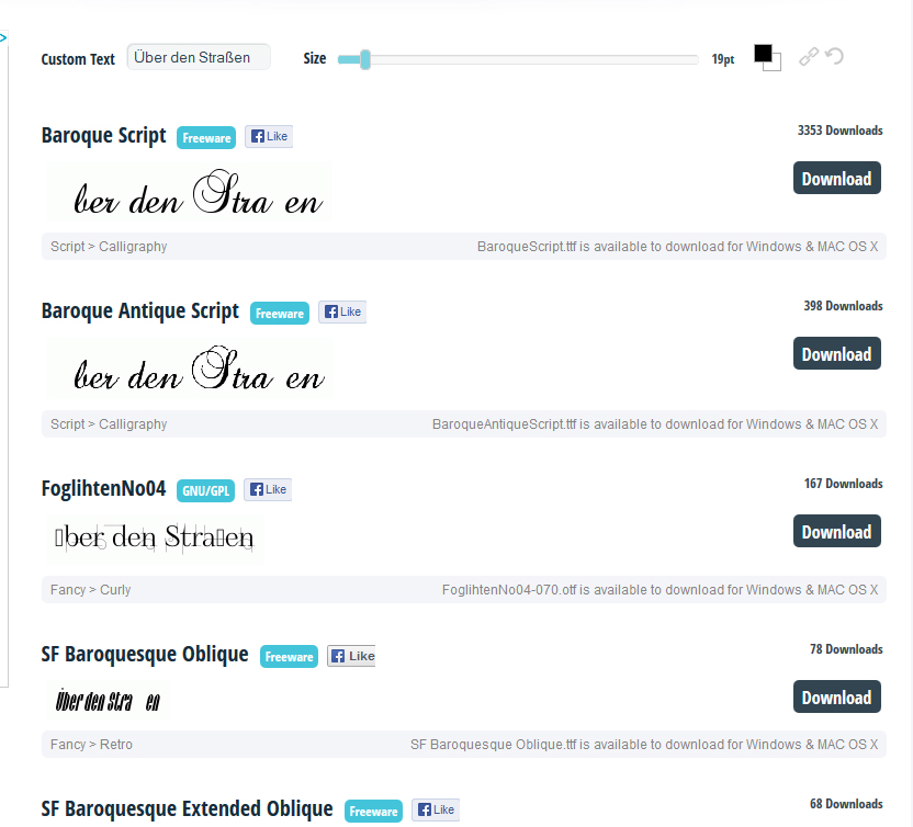 Google mal nach free fonts und Du findest einige Seiten, die kostenlose Schriftarten anbieten, unter der Rubrik "Calligraphy" sind sicherlich einige dabei, die ein ß bzw. Umlaute unterstützen.Was du auch probieren kannst: lass den Haupttext in Deiner Scjhriftart und ändere nur ( bzw. die Umlaute mit einer ähnlichen Schriftart ab. Hier einige Beispiele Wer ist online?Mitglieder in diesem Forum: Google [Bot] und 28 Gäste