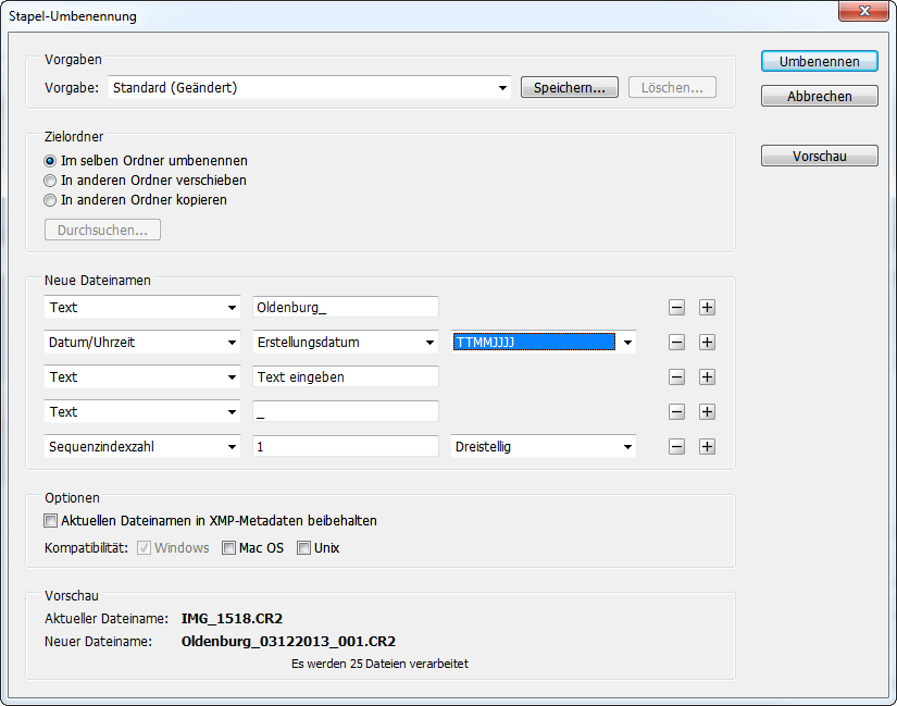 Mehrere Fotos umbenennen