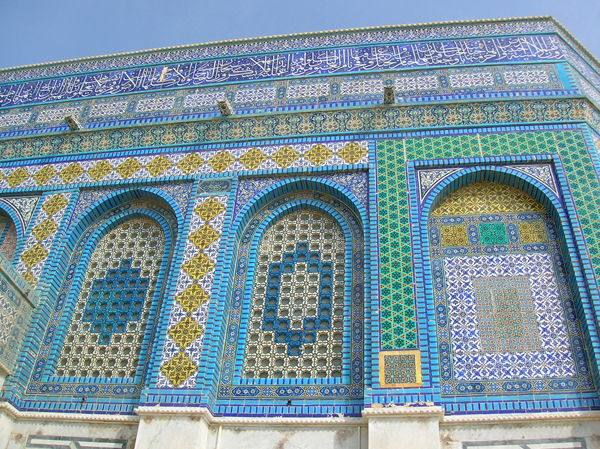 Re: Challenge 01/2014 • FarbenprachtDie Kacheln vom Felsendom, dem Wahrzeichen Jerusalems, sind sehr bunt. Hier nur kleine Ausschnitte des großen Gesamtkunstwerks. Im Sonnenlicht mit blauem Himmel und der goldenen Kuppel wirkt das einmalig. Die Fotos entstanden bei meiner 1. Israel-Reise 2009.