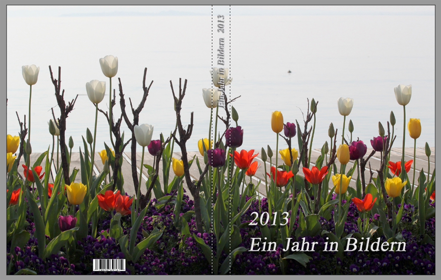 Beide Vorschläge sind super! Das Cover für`s Jahrbuch ist bei mir meist die aufwändigste Sucherei nach einem passenden Hintergrundfoto und oft ein Kompromiss - und endet mit einer Blumenwiese, Wasserspiegelung, Wellen. Diesmal habe ich eine Reihe Tulpen vor Gardasee :roll: