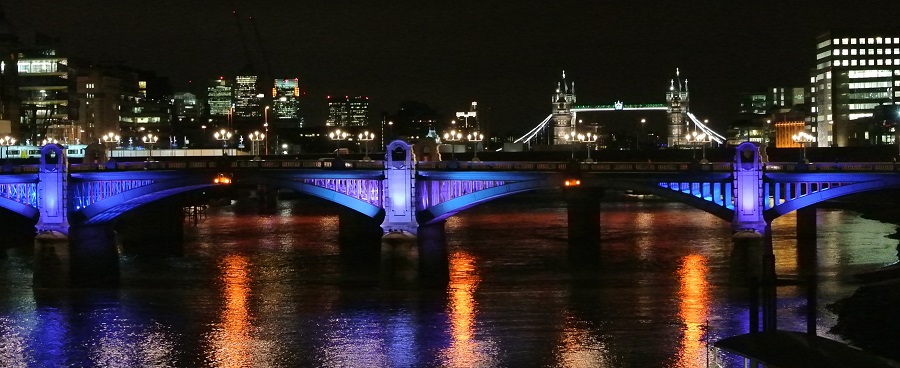 Die beleuchteten Brücken und Gebäude in London bei Nacht, sind allein schon eine Reise Wert.