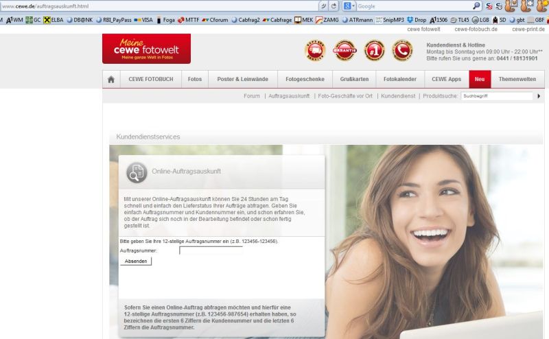 Die Seite http://www.cewe.de/auftragsauskunft.html gab mir bisher immer schnelle und zuverlässige Angaben um das Verbleiben meines Auftrages. Mein letztes Buch aber erschien dadrin wochenlang nicht, dann später tauchte es mit ziemlich falschen Zeitangaben auf.