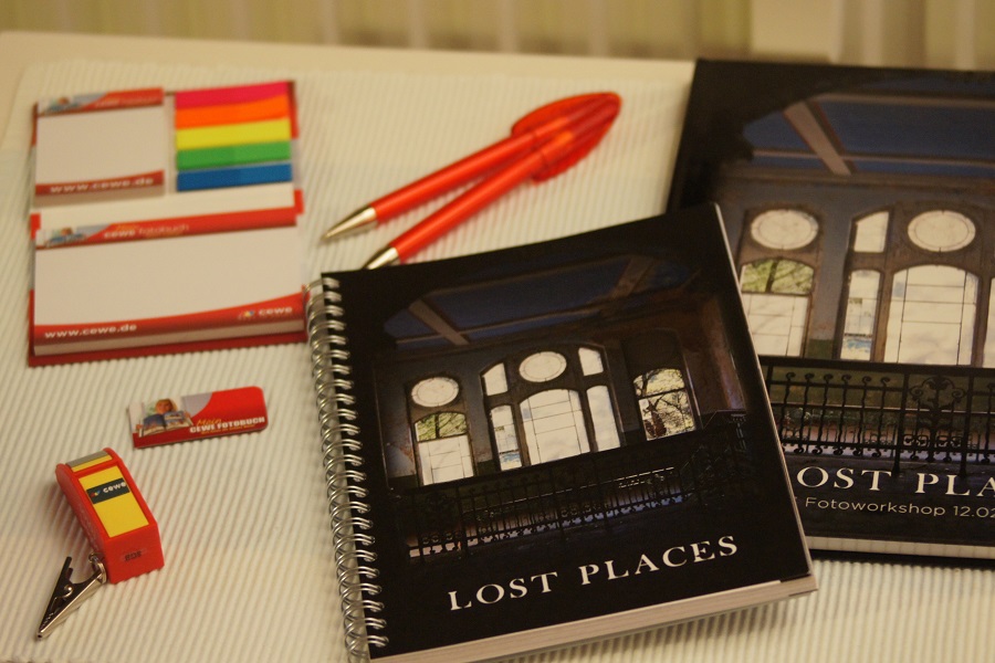 2 Kulis, 1 USB-Stick, 1 magnetisches Lesezeichen, 1 kleines Heft mit verschiedenen Notizblöcken, 1 Jahresplaner mit Spiralheftung und ein A4-Notizbuch im Hard-Cover - sehr edel! Letztere beide mit Erinnerungsfotos vom Workshop Lost places. Meine Aufgabe: Wieviele Tage sind es noch exakt von heute (15.07.) bis Heilig Abend ? Apropos: Denkt ihr eigentlich schon an Weihnachtsgeschenke? Merke gerade, daß ich den allseits beliebten CEWE-Baumwollbeutel vergessen habe. Finde ihn jetzt allerdings auch nicht. Deshalb fehlt er auf dem Foto. LG Bäuerin