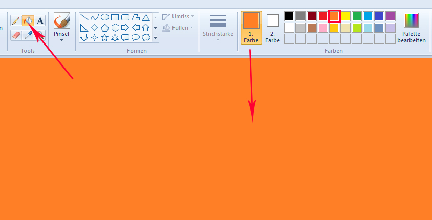 Falls Du aber mit Windows arbeitest, müsstest Du im Startmenü das Programm "Paint" haben. Du klickst zuerst auf das Farbeimer-Symbol, dann auf eine gewünschte Farbe in den vorgegebenen Farbfeldern/alternativ regelst Du die Farbe im bunten Farbfeld selbst ein. Wenn ein Farbfeld angeklickt ist, erscheint die gewählte Farbe im Feld "1. Farbe". Du klickst mit der linken Maustaste hinein und ziehst bei gedrückter Maustaste in das große Feld. Es erscheint ein Farbeimer-Symbol im großen Feld. Durch nochmaliges Klicken wird das Feld mit der gewünschten Farbe gefüllt. 3000x3000 px müssten reichen. Speichern - fertig. Liebe Grüße
