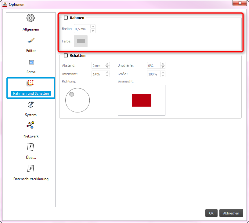ich werde dieses Verhalten in der 5.0.4 noch einmal nachtesten. In aktuelleren Softwareversionen wie der 6.0.0 konnte ich dieses Thema bisher nicht reproduzieren. Haben Sie in Ihren Optionen generell einen Rahmen eingestellt? Wenn Sie diesen deaktivieren, können Sie in zukünftigen Projekten einen ungewollten Rahmen vermeiden. Liebe Grüße