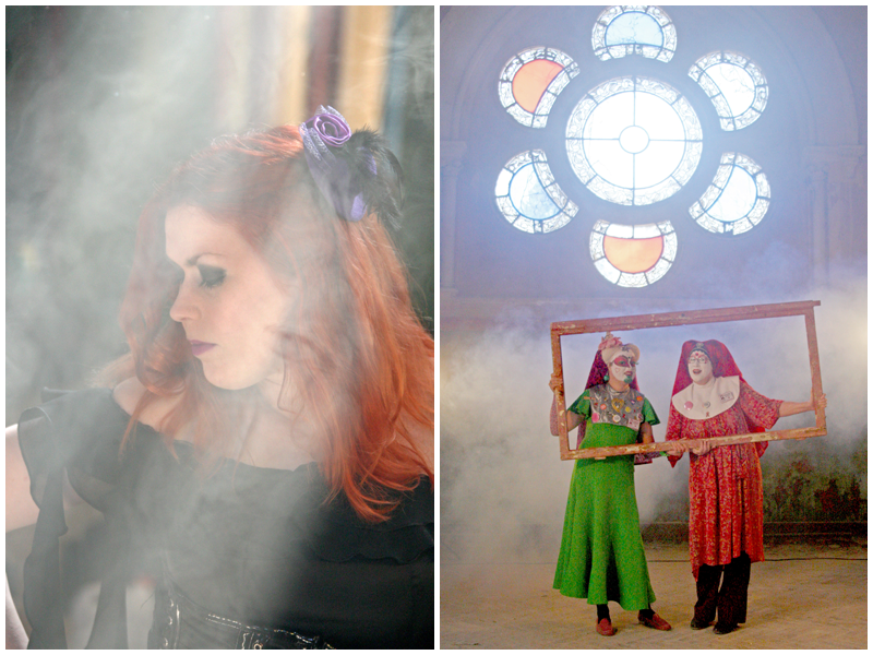 Besonders spannend wurde diese ungewöhnliche Kulisse jedoch auch, als die Models, die unseren Workshop begleiteten, den Räumen Leben verliehen. Düster, verträumte Porträts konnten unsere Teilnehmer von Sonja Langenfeld alias Schneewittchens Stiefschwester machen. Während Daphne und Suzette, Schwestern des Ordens der Perpetuellen Indulgenz, als farbenfrohes Gegenbeispiel Energie in die verschlafenen Räumlichkeiten zauberten. Mit portablen Lichtanlagen und unterschiedlichen Requisiten konnten die Teilnehmer und Models Ihren kreativen Ideen Ausdruck verleihen.