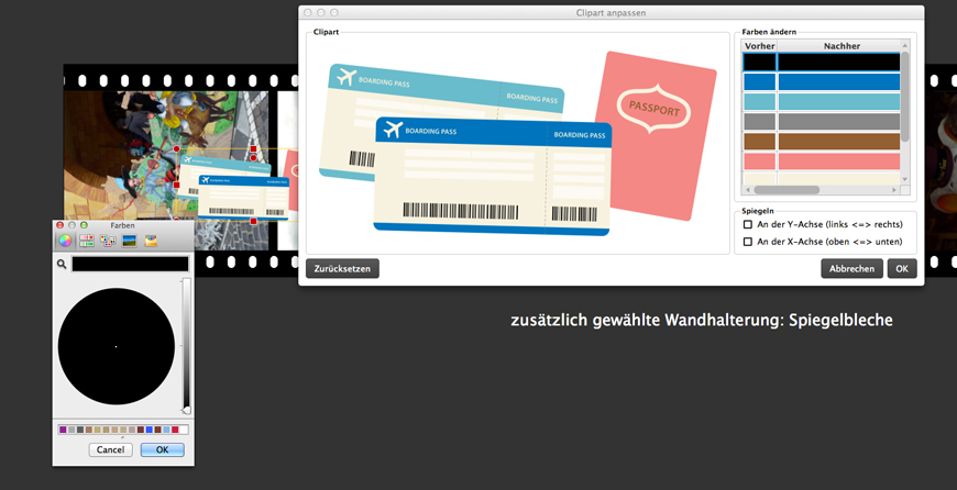 Josefia Re: Pipetten FarbauswahlIn dem Du zBsp. bei einem Clipart doppel klickst dann bekommst Du schon mal die Möglichkeit Farben zu ändern und dann noch auf die Farbe klicken, wie hier als Beispiel Schwarz und schon bist du im Farben Menü auf deinem Mac.