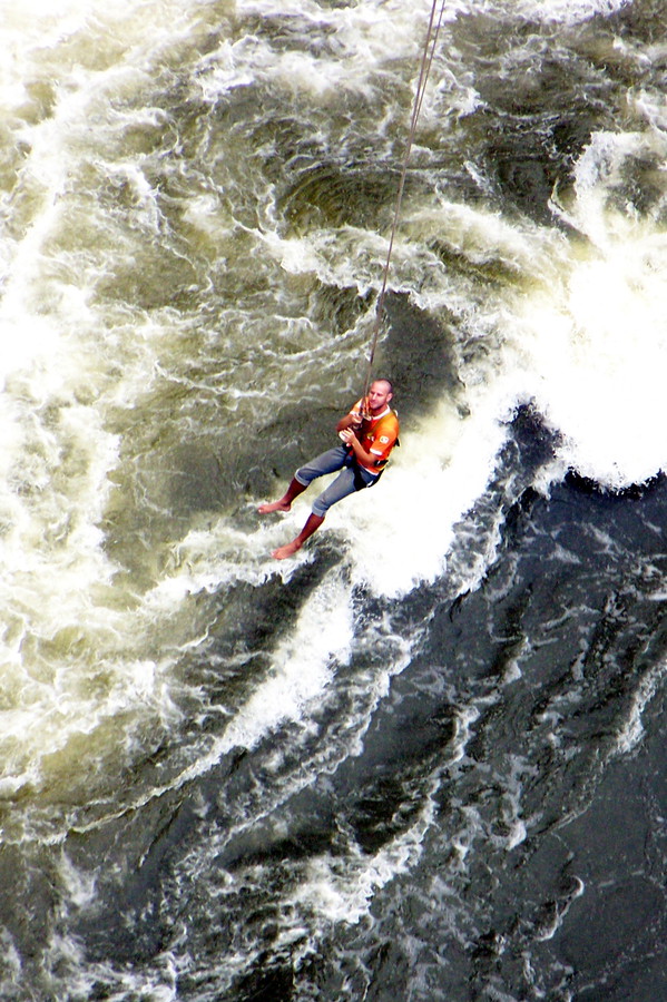 uwu Re: Challenge 11/2015 • NervenkitzelIch habe 2 Fotos mit Todesmutigen gefunden, die sich am Gummiseil ca. 100 m von der Victoria falls Bridge über der Schlucht des Sambesi in die Tiefe stürzen. Mir ist bei dem Anblick fast schlecht geworden. Ich habe trotzdem auf den Auslöser gedrückt.