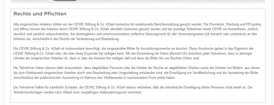 CEWE Stiftung & Co KgaA Frau Stefanie Witgräfe Meerweg 30-32 26133 Oldenburg Re: Fotobuch von Freunden einsehen lassenSilber-Distel hat geschrieben: Man kann nur noch bestellte Bücher einreichen, indem man sich mit der Auftragsnummer bewirbt - wie beim Fotowettbewerb.