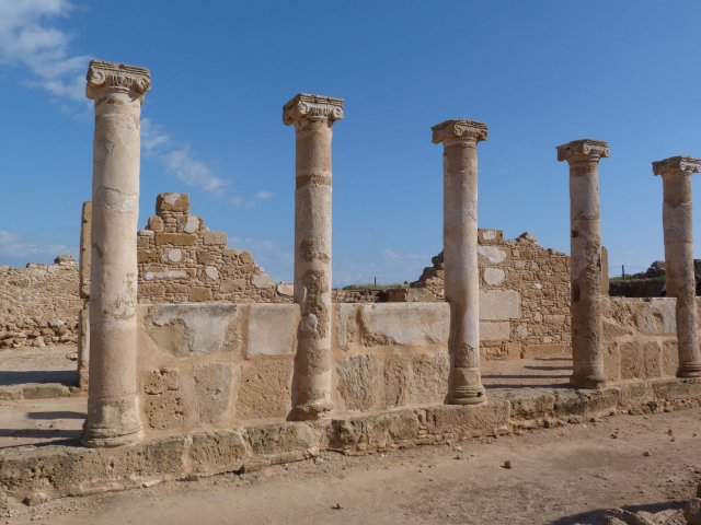 Blaues Wasser gegen braune Steinküste. Aufgenommen mir der Panasonic FZ 45 auf Zypern.