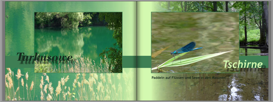 Irgendwie stehe ich aber noch auf der Leitung, warum ich zwei Orte in ein Fotobuch verpacken will und dann für jeden Ort ein halbes Titelbild mache. Entweder es gibt etwas verbindendes ("Sommerurlaub mit Oma", "Die schönsten Seen im Salzkammergut") oder man sollte doch gleich zwei Fotobücher machen. Aber darum geht es ja gar nicht. Es geht ja um Ideen für Titelblätter und die Gestaltung mit einem eigenen Buchstaben gefällt mir gut und kann man sicherlich einsetzen.