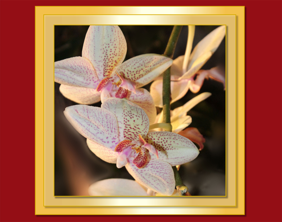 Re: RahmengestaltungIch weiß nicht, ob dieser Rahmen mit einem externen Programm gestaltet wurde, vermute es aber wegen der Farbverläufe in den gelben Flächen. Ich nehme an, dass ein Foto mit vorwiegend gelbem Inhalt sehr weichgezeichnet wurde und dann vier mal in immer kleiner werdender Größe (ist gut an einem Raster auszurichten) übereinandergelegt wurde. Jedes der gelben Bilder mit einem entsprechend passenden schmalen Farbrand und mit einem relativ dunklen Schatten versehen - so müsste es zu machen sein.