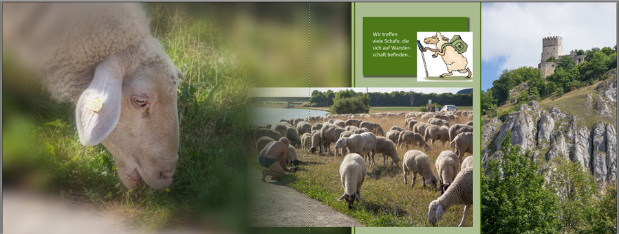der Hintergrund ist ein Recyclingpapier, aber für alle Seiten ist es sicherlich zu viel. Aber die Hintergründe kommen ohnehin erst zuletzt platziert. Die Schrift soll dunkelbraun sein, auf den weißen Seiten beige, oder wenn es besser paßt vielleicht auch in hellblau. Auch dies ändere ich erst zum Schluß. Für die größeren Überschriften stelle ich mir eine Mosaikfüllung vor, wenn es welche auf dieser Seite gibt. Für einen Font habe ich mich auch noch nicht entschieden, die Texte wahrscheinlich in Goudy old style, die Überschriften aus so, würde mich aber auf einen Tip von dir freuen. --------------------------------------------------- Re: Harmonie im CEWE FOTOBUCH schaffenLiebe Rotuma,