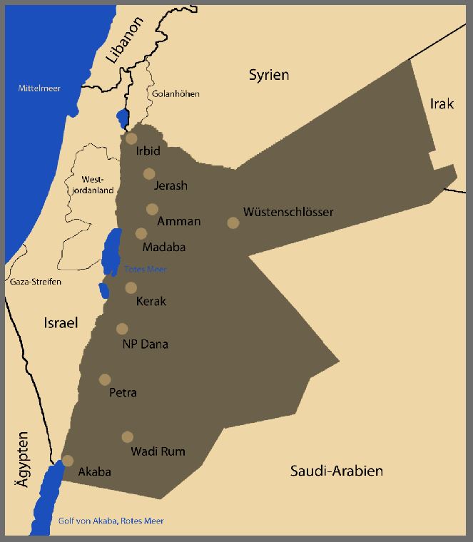 Hallo pittyIch lade mir das entsprechende Land von einer Internetseite als Umriss herunter: http://kostenlose-landkarten.de/ http://www.d-maps.com/index.php?lang=de Zusätzlich hole ich eine Landkarte als jpg mit den Informationen (Orte, Flüsse, Seen), die ich benötige. So gehe ich vor: Ich benutze ein externes Bildbearbeitungsprogramm und erstelle eine Bildgröße mit einer Auflösung von 300 px und Seitengröße wie für das Fotobuch - also mindestens 30 x 30 cm. Beide Landkarten füge ich auf verschiedenen Ebenen in der gleichen Größe ein. Landkarte 1.jpg Landkarte 2.jpg Landkarte 3.jpg Landkarte 4.jpg Landkarte 5.jpg Dann füge ich die fertige Karte als jpg ins Fotobuch ein: Seite1.jpg Die png-Umrisskarte benutze ich weiter, um kapitelweise die jeweiligen Zwischenziele zu veranschaulichen. Das sieht dann z.B. so aus: Landkarte 6.jpg Habt Ihr Fragen? Ich helfe gerne weiter. ich möchte in naher Zukunft ein FB gestalten von unserer Reise in den Oman. Jetzt bin ich beim Stöbern über die Seite von Jordanien gefallen und finde die Schriftart von den Ländern sehr schön. Kannst du mir den Namen sagen und falls es sie bei dem Angebot im Cewe Bearbeitungsprogramm nicht gibt woher du sie hast Würde mich über eine Antwort freuen Gruß Damaris Liebe Grüße