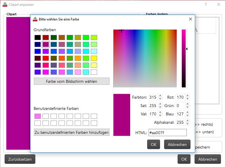 Für die quadratischen Farbelemente habe ich Cliparts verwendet. Um die Farbe besser an das Kleid in den Bildern anzupassen, habe ich per Doppelklick auf das Cliparts den Farbton leicht verändert.