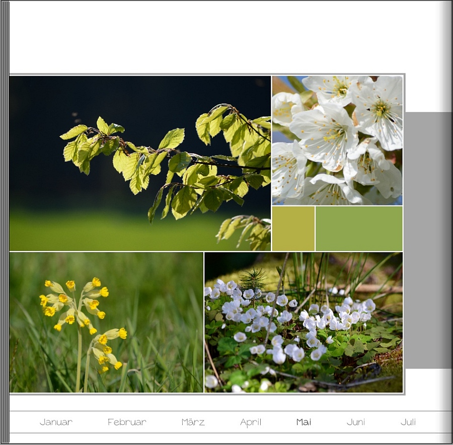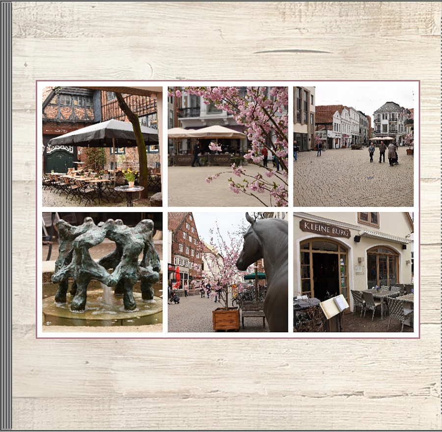 Re: Objekte gleichmäßig verteilenJosefia hat geschrieben: ...Damals wurde gerade in der Software die Möglichkeit implementiert, für den Farbrand die Position Innen, Mitte oder Außen zu wählen - sonst hätte ich wohl aufgegeben. So habe ich den Farbrand auf Mitte gesetzt und alle Fotos mit den magnetischen Hilfslinien bündig aneinander gelegt. Dahinter habe ich ein einfarbiges Bild (es ginge auch irgendein Foto und inzwischen auch ein Clipart) mit einem etwas breiteren Farbrand gelegt. Dieses Hintergrundbild habe ich auch einfach mithilfe der magnetischen Hilfslinien auf die passende Größe gezogen. So waren ohne viel Ausrichten und Anpassen alle Abstände gleich. ... ich habe auch gleich wieder profitiert. Bei meinem aktuellen Buch zur Donau-Fahrradtour bin ich bei der letzten Seite fast verzweifelt. Die Linien wollten und wollten nicht genau stimmen. Ich hatte schon aufgegeben und mich damit abgefunden. Und dann kam dein Beitrag! Ich habe die Seite überarbeitet und so sieht sie jetzt aus.