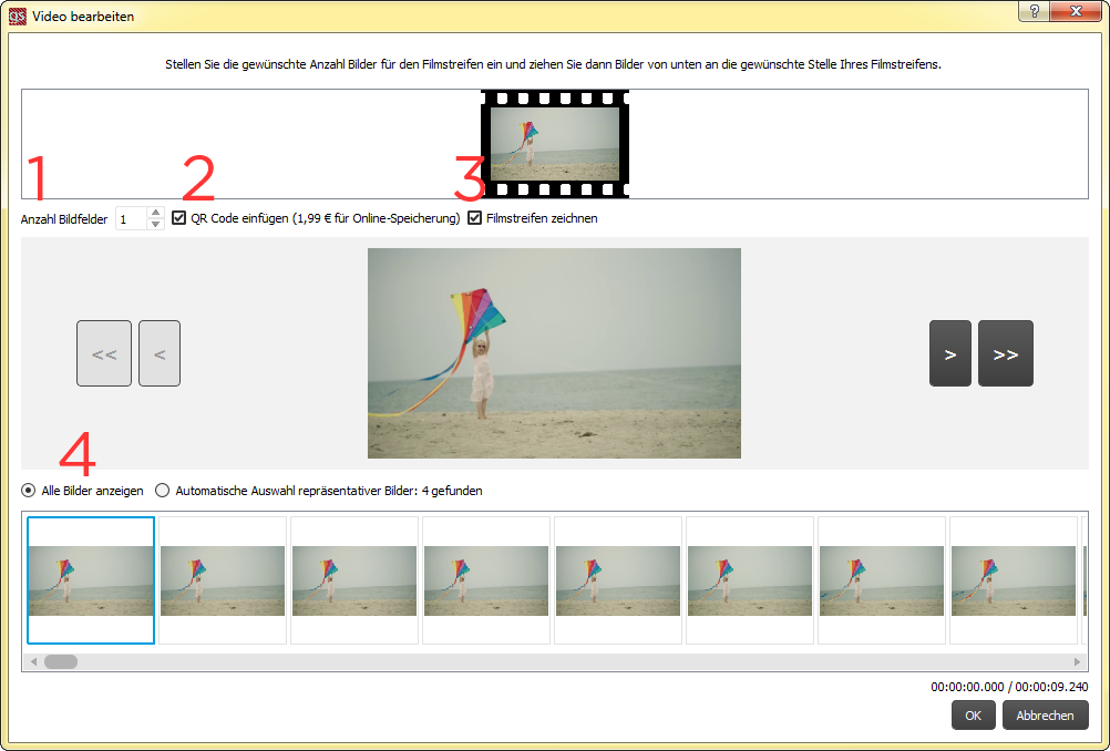 1. Wie viele Bildausschnitte aus Ihrem Film Sie angezeigt bekommen, können Sie durch die Anzahl der Bildfelder festlegen.