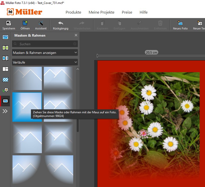 Wir laden Sie herzlich ein, die neue CEWE Community mit integriertem Forum zu entdecken und künftig zu nutzen. Das bisherige Forum, in dem Sie sich gerade befinden, steht nur noch bis Ende 2025 für neue Beiträge zur Verfügung und wird ab dem kommenden Jahr 2026 nur noch lesend zugänglich sein. Informieren und registrieren Sie sich jetzt in der neuen CEWE Community – wir freuen uns auf Sie! Masken und RahmenVersion 7.3.1