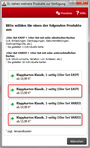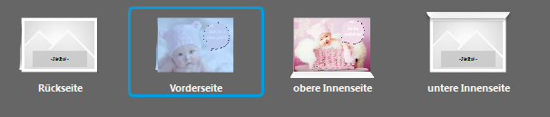 Sowohl in unserer Software wie auch Online haben Sie die Möglichkeit die neben den Außenseiten der Klappkarten auch deren