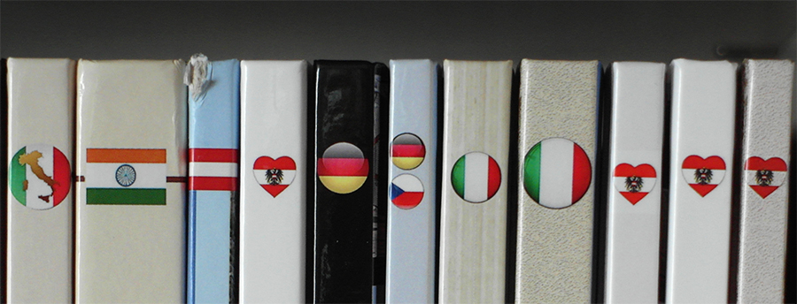 uwu Re: Buchrücken beschriften?Ich mache es ähnlich, oben am Buch immer die Fahne des Landes und unten mein Logo. Viel mehr geht sich ja nicht aus. Hab schon einmal überlegt, wie auch hier von jemanden gefragt, ein Bild über 4 Bücher zu ziehen, aber da sind dann am einzelnen Buch nicht so gut aus.