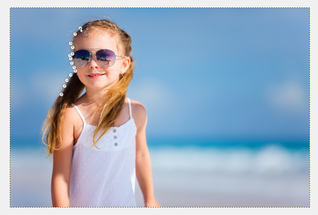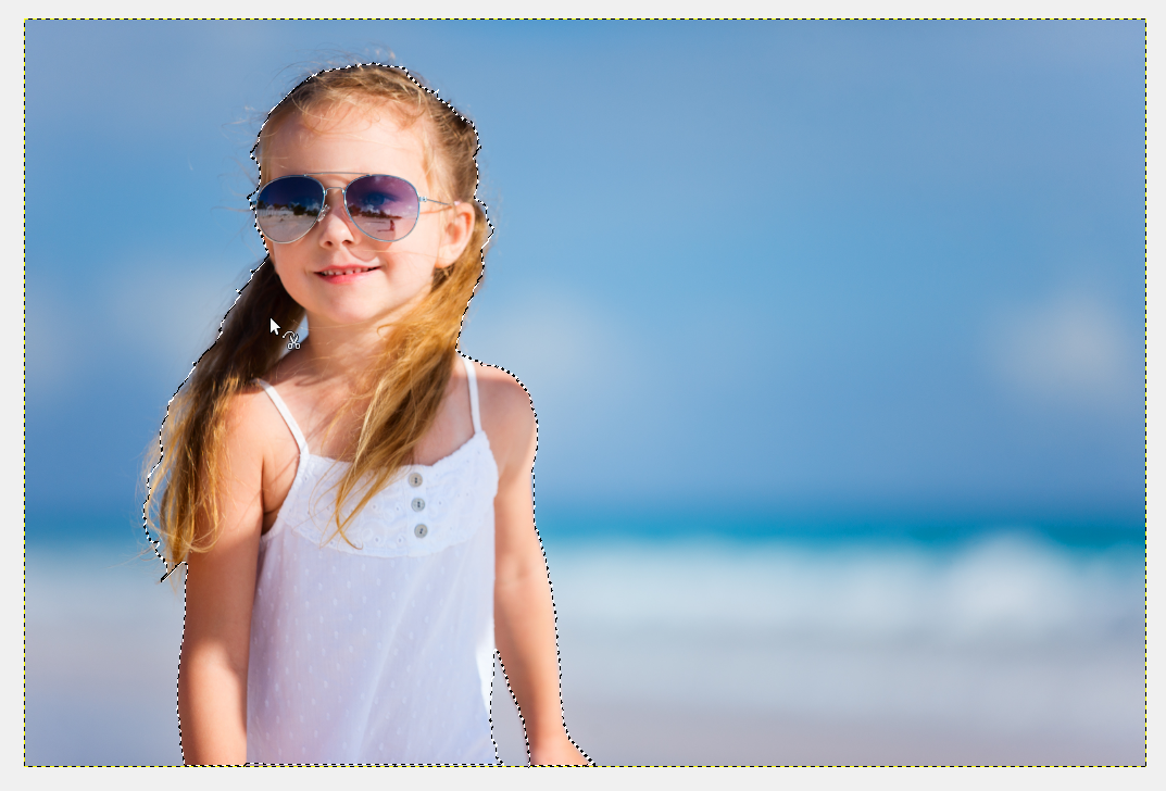 Wenn Sie dieses Werkzeug ausgewählt haben können Sie durch Klicken um den gewünschten Ausschnitt herum eine Auswahl erstellen. Die Schere erstellt dabei automatisch Linien, die sich an dem Kontrast der Umgebung orientieren.