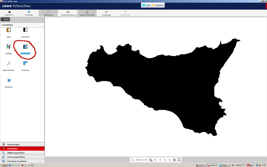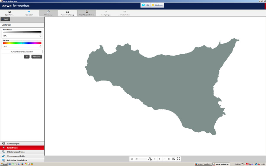 Re: Schwarzes, weißes oder graues Bild in Fotoschau erstelleIch habe jetzt (erst?) entdeckt, dass das Umfärben von png funktioniert. Das hilft mir, z.B. Landkarten auf farbige Hintergründe leicht anzupassen: