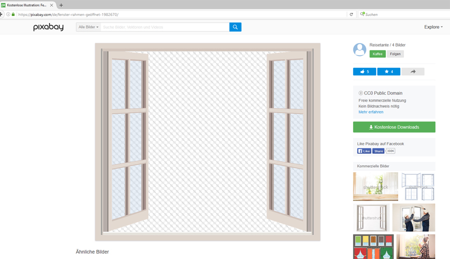 Re: geöffnetes Fenster als RahmenIch habe eben auch nochmal nach dem Fenster gesehen - wenn so ein grau-weiß karierter Hintergrund zu sehen ist, bedeutet es einen transparenten Hintergrund und muss eine png.Datei sein. War es bei Dir eine andere Ansicht? Es gibt noch ein Fensterrahmen, der hat einen weißen Hintergrund - und diesen müsstest Du erst freistellen.