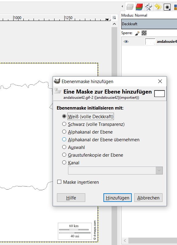 4. Im Ebenenmaskendialog klickst du "Weiß" an und "Hinzufügen".