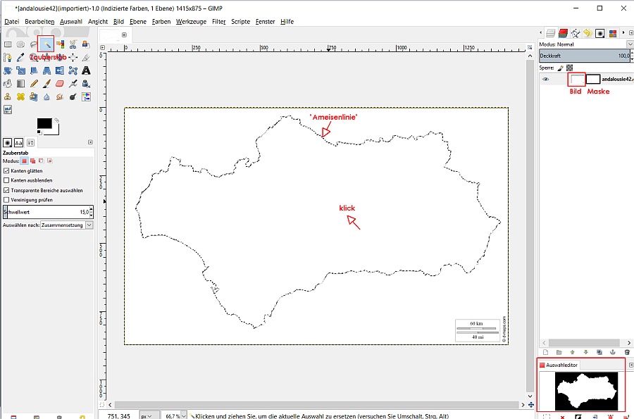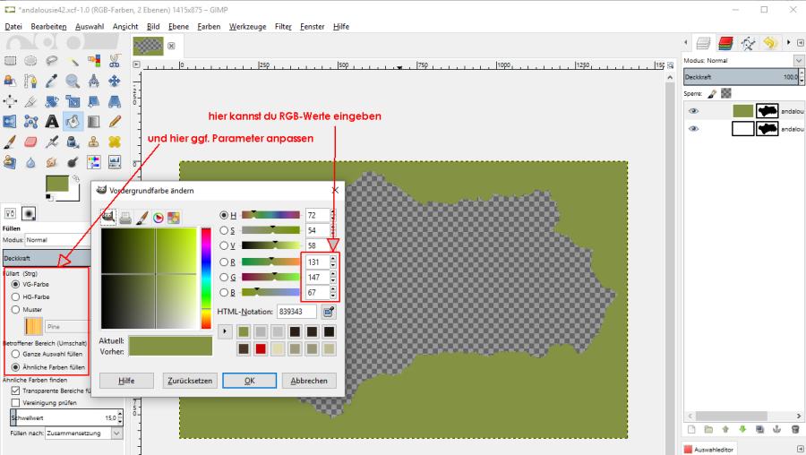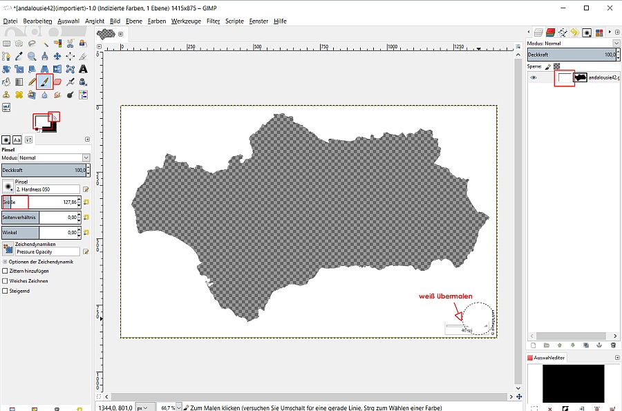 Zur Zeit benötige ich nur so einen Umriss, wie er mir freundlicherweise für Andalusien zur Verfügung gestellt wurde, noch für die Insel Mallorca. Für welche Anwendungen in Deinen Fotoalben benötigst Du sonst das Programm GIMP?