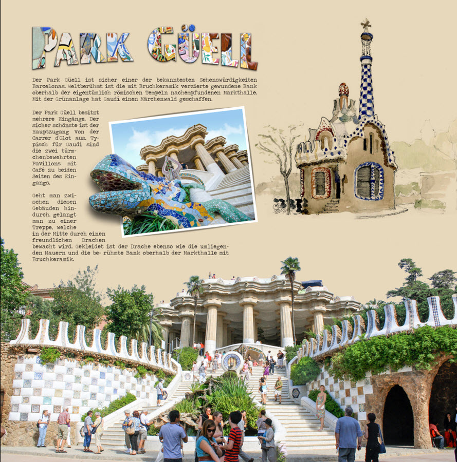 die Erklärungen machen Sinn. Danke. Für mich ist "parc" richtiger, weil ich auch Fotos vom Park selbst dabei habe und nicht nur vom Museumsbereich. Und dieser Park heißt dann auf Landkarten parc... Re: Mut zum AnschnittJetzt habe ich in meinem Spanien-Buch nachgesehen, da habe ich auch "Park Güell" geschrieben, kann mich aber an den Hintergrund dazu nicht mehr erinnern. Ich denke ja in englisch, schreibe in deutsch, bin mir aber nicht sicher, ob man bei Eigennamen die Landessprache nutzen sollte oder die Übersetzung.